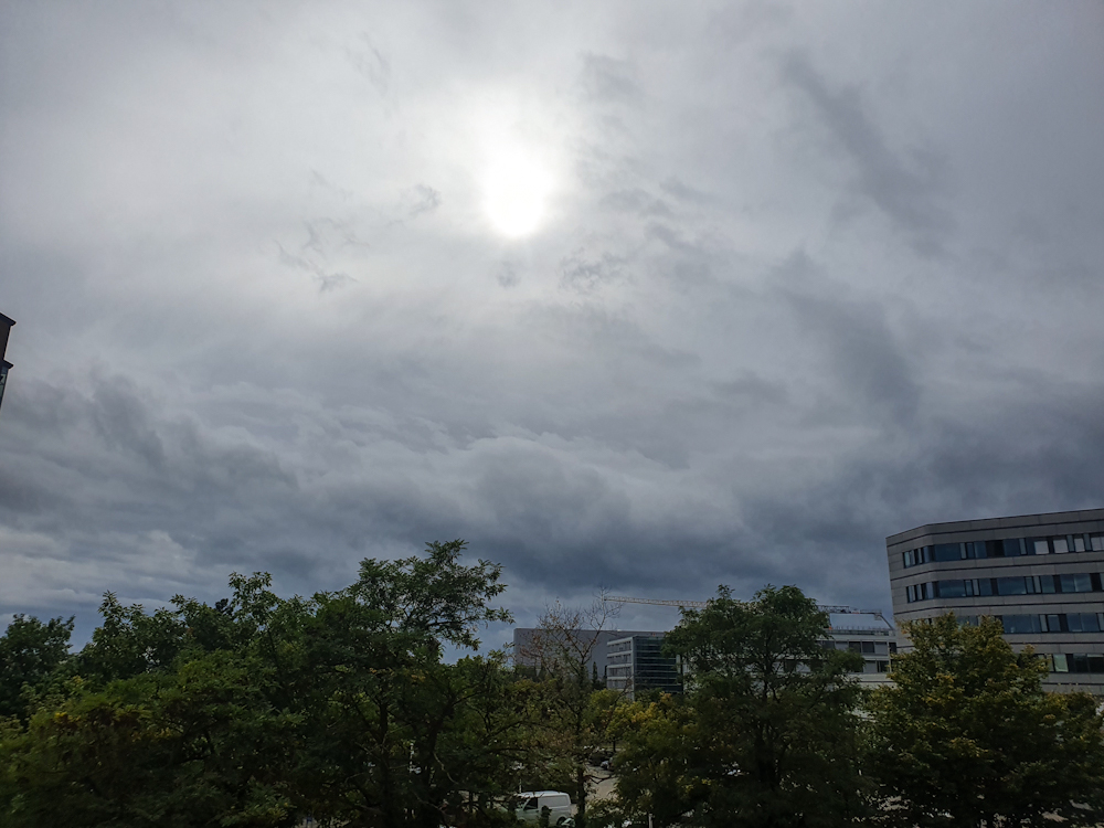 Auch heute blieb es bedeckt, die Sonne schien, wenn überhaupt, nur sehr matt mal durch (Bild). Dazu wie zuletzt immer mal wieder Regen, wobei dieser häufiger ausfiel und besonders am Abend teils