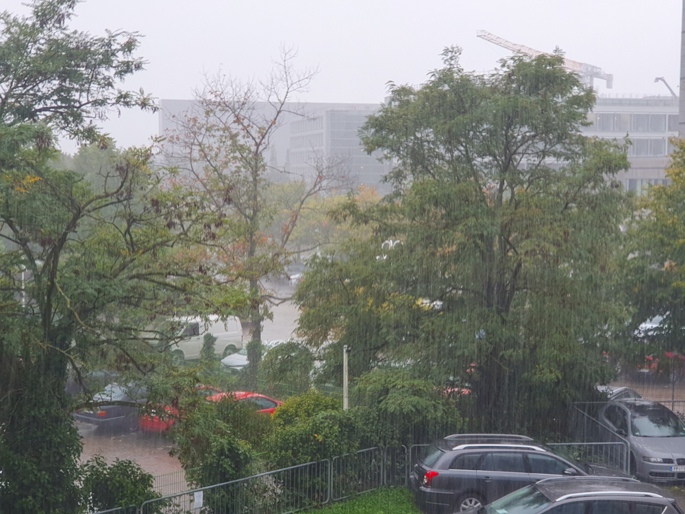 Eine feuchte Luftmasse lag heute in der Luft, es war fast sogar schwül. Es regnete ganz ordentlich mit nur wenigen Unterbrechnungen. Am Nachmittag dann konvektiv verstärkt und kräftig (Bild).