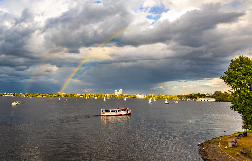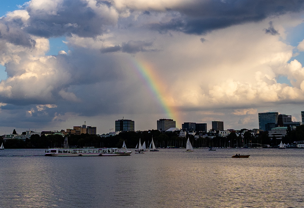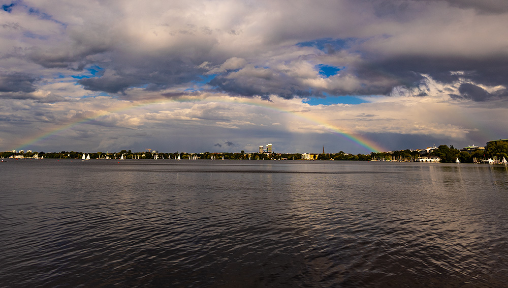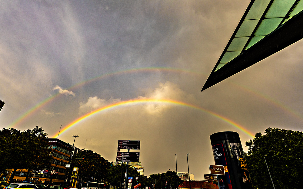 Und wieder Schauer, wie im April! Natürlich gab es wieder Regenbögen (Bild). Dazu weiterhin mäßig-warm. |
