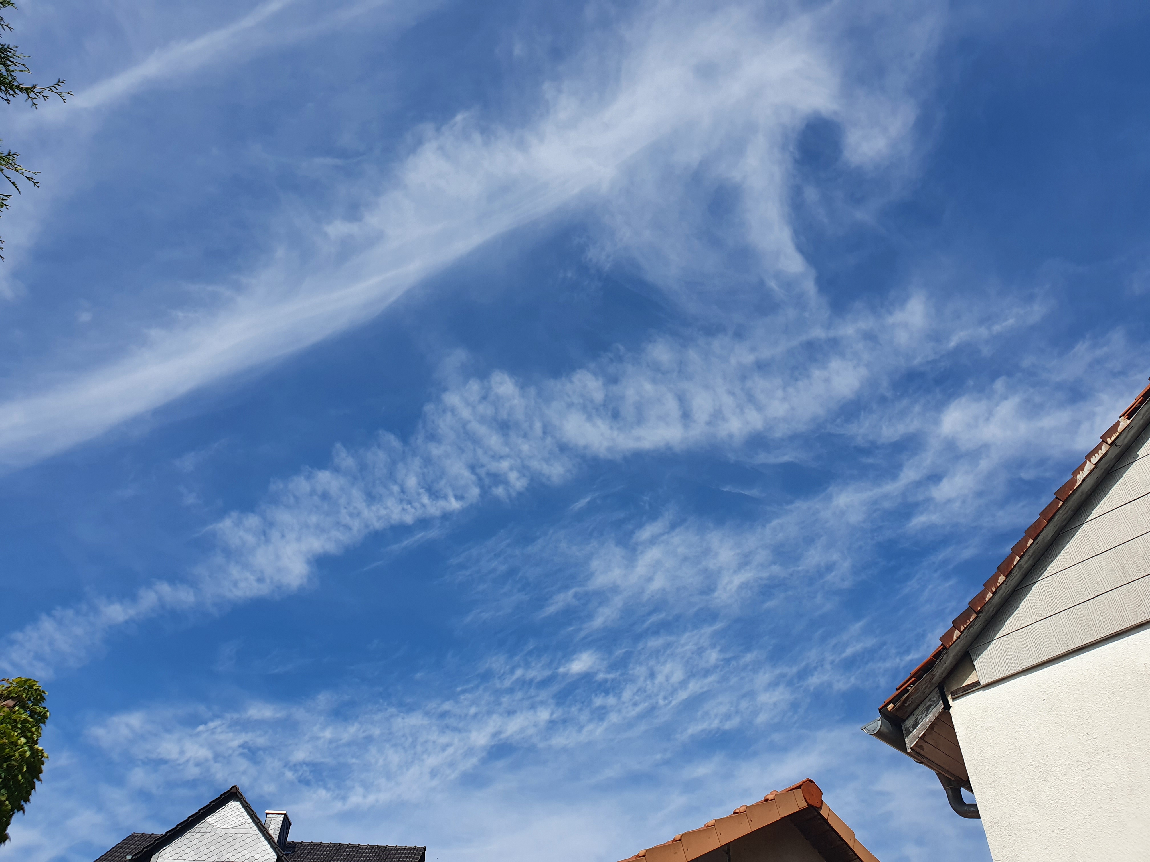 übrigens an der Länge der Kondensstreifen erkennen, wie feucht die Luft in der Höhe ist: sind die Kondensstreifen sehr kurz und lösen sich somit schnell wieder auf, ist die Luft noch recht trocken. Sind
