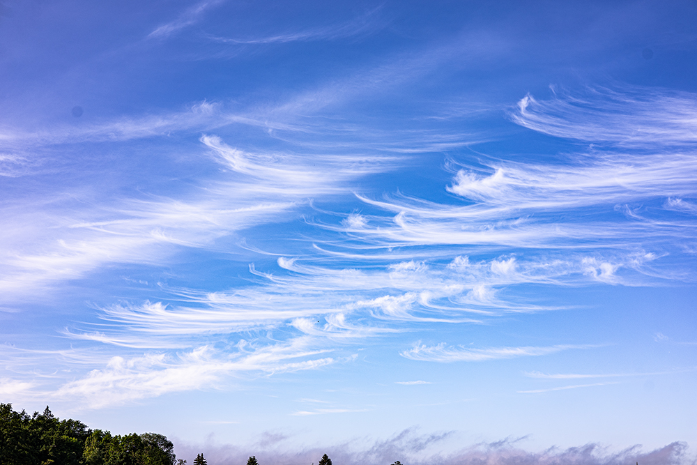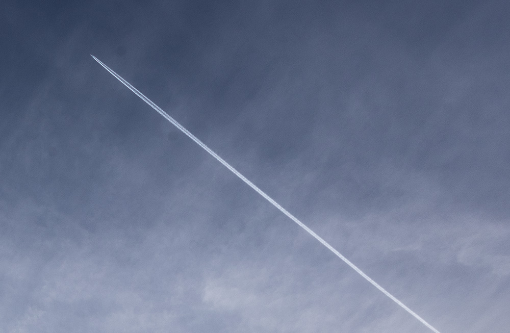 Cirrus homogenitus. Kondensstreifen entstehen, wenn die obersten Luftschichten der Troposphäre bereits mit Wasserdampf gesättigt sind, aber noch nicht ausreichend genug, damit sich