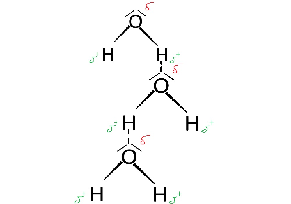 partial negativ und der Wasserstoff partial positiv geladen. Befinden sich zwei benachbarte Wassermoleküle nebeneinander, so ziehen sich die partial positiv geladenen Wasserstoff- und die partial negativ