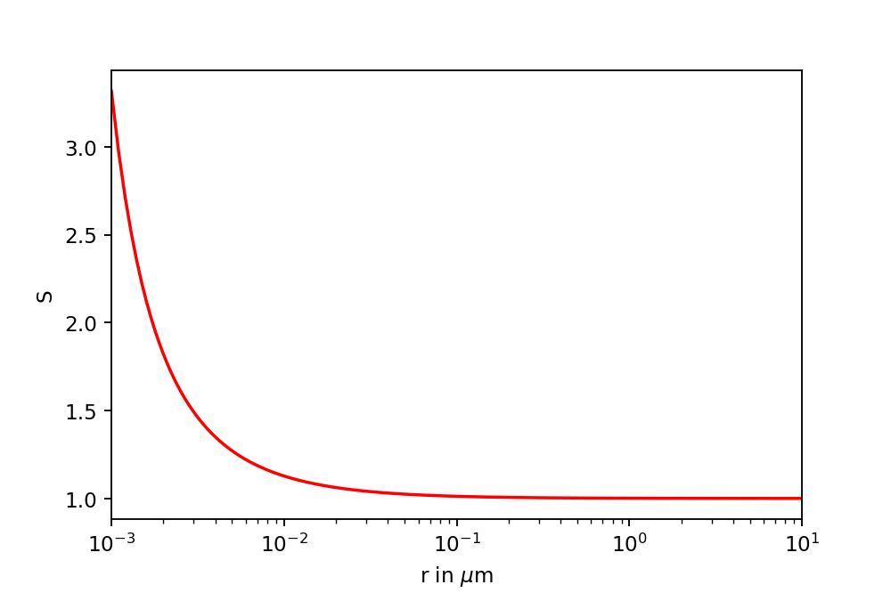 r abhängig ist. Im Gegensatz zur Kelvin-Gleichung ist der Maximalwert des Verhältnisses 1 und sonst dann kleiner als 1. Je kleiner