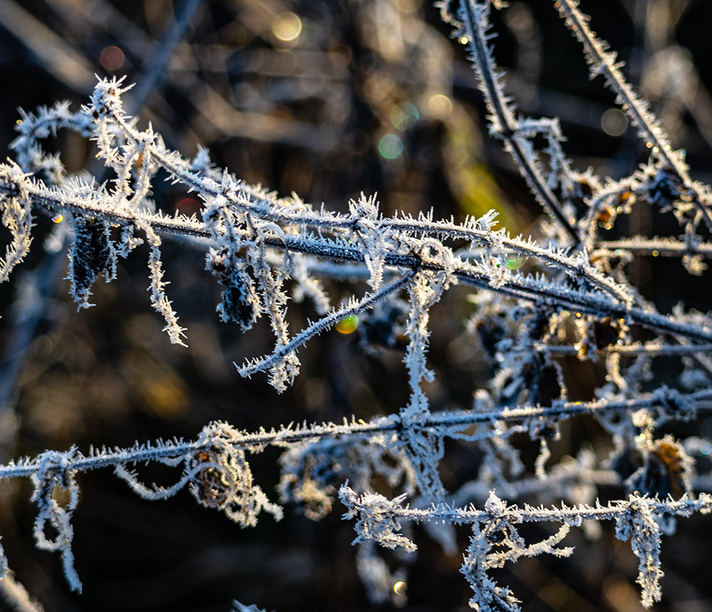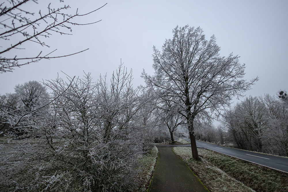 Raureif nach Nebel und Temperaturen bis -10°C.