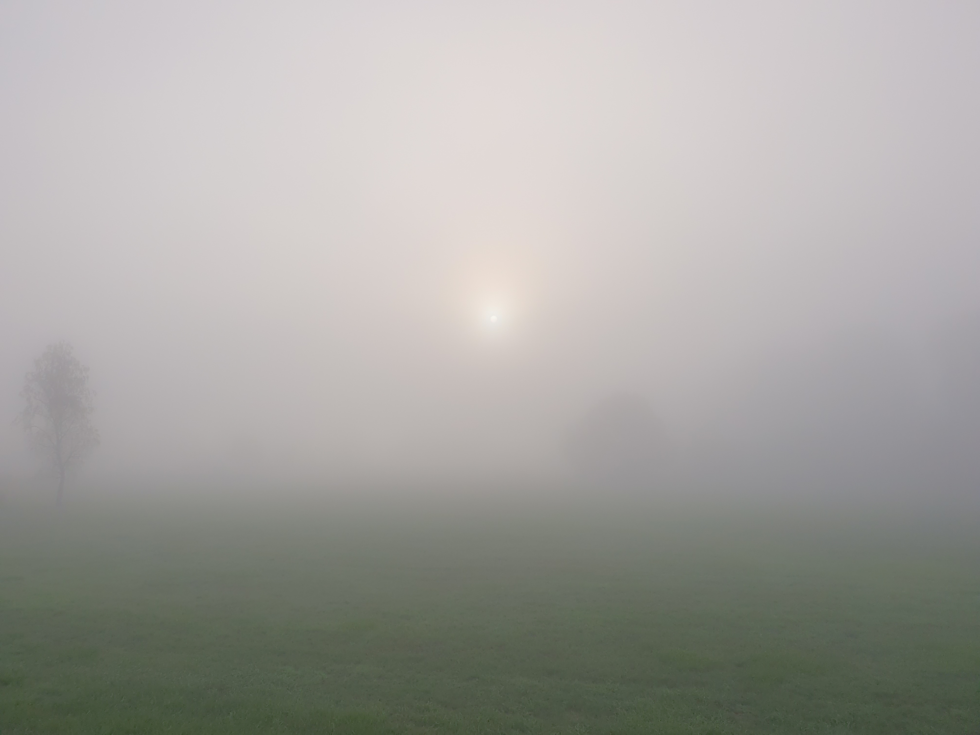 Strahlungsnebel am Morgen durch nächtliche Abkühlung der Luft.